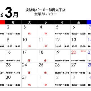 こんにちは 淡路島バーガー×ふわこっぺ静岡丸子店です 3月度の営業カレン・・・